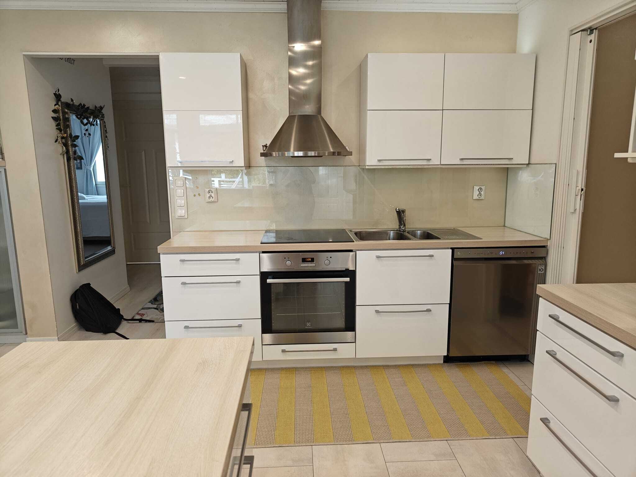 Varusteet: liesikupu, astianpesukone