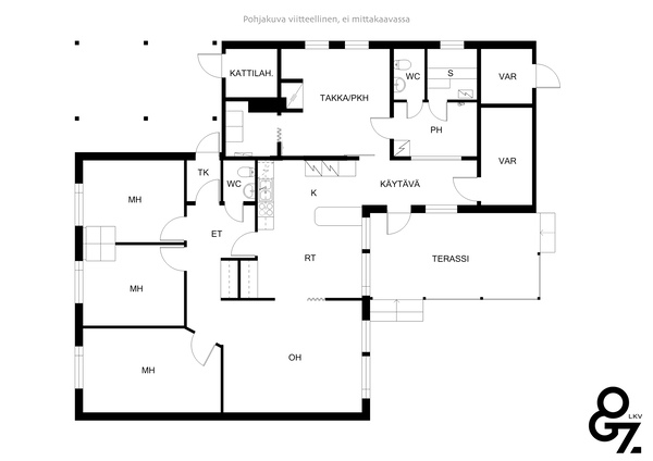 käytännöllinen kodinhoitohuone. Arkeen mukavuutta tuovat kaksi wc:tä, kylpyhuone ja sauna.