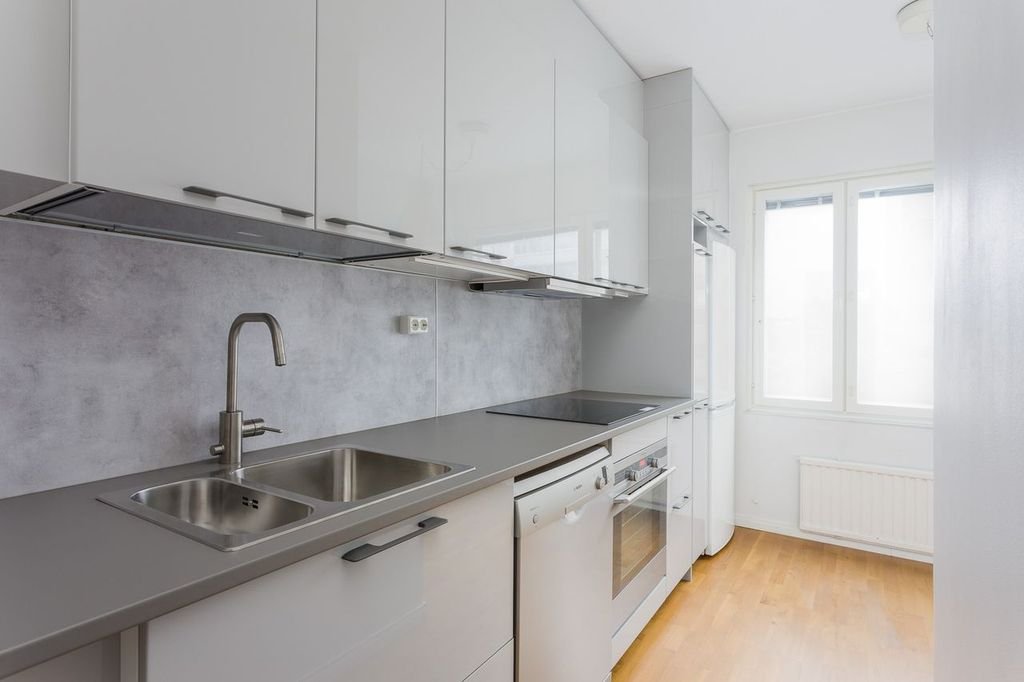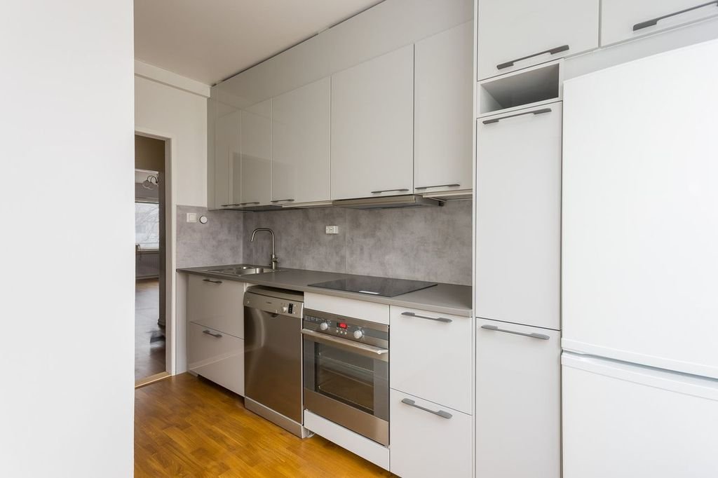 Varusteet: Jääkaappipakastin, erillisuuni, liesi, liesituuletin ja astianpesukone