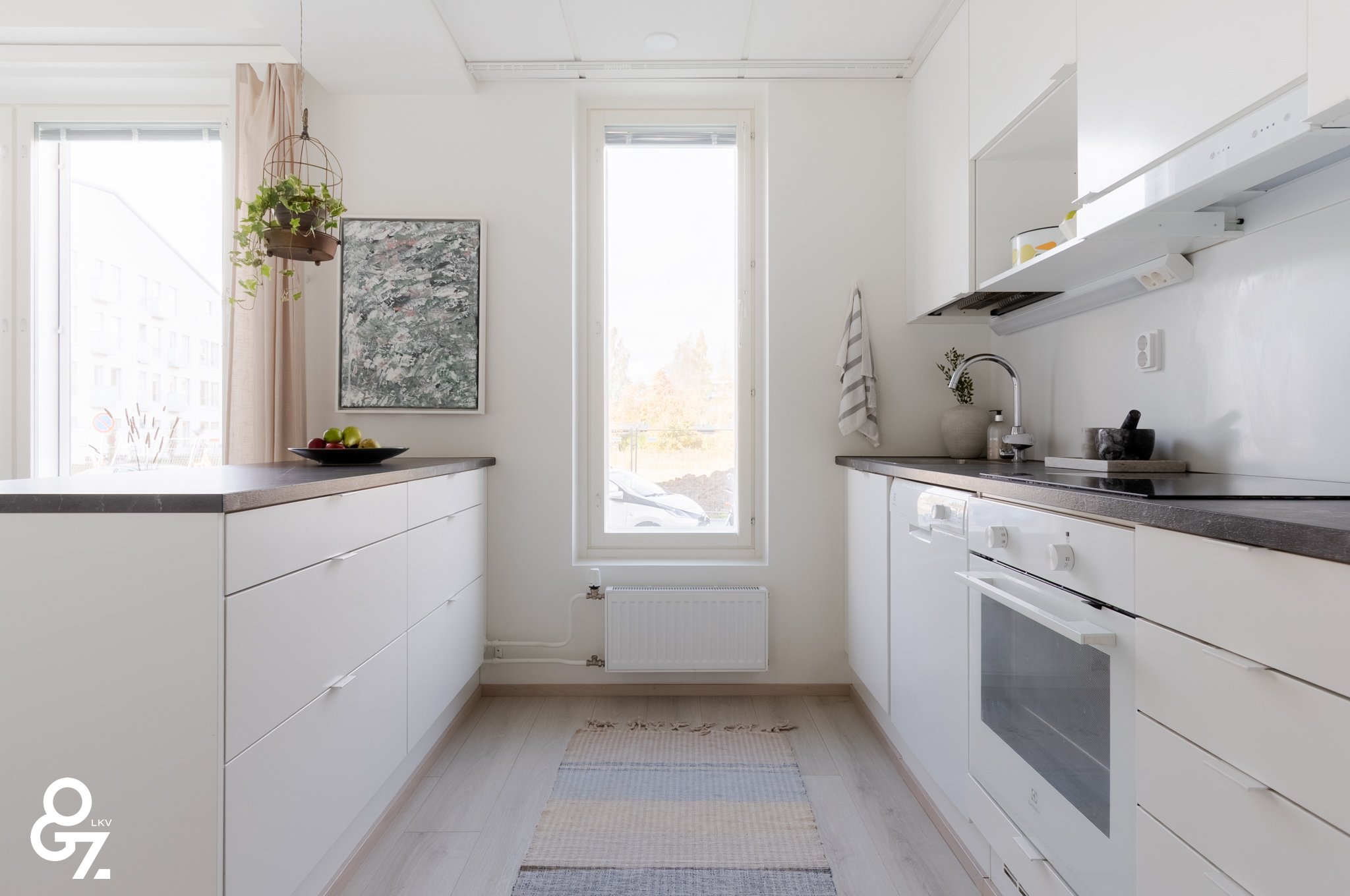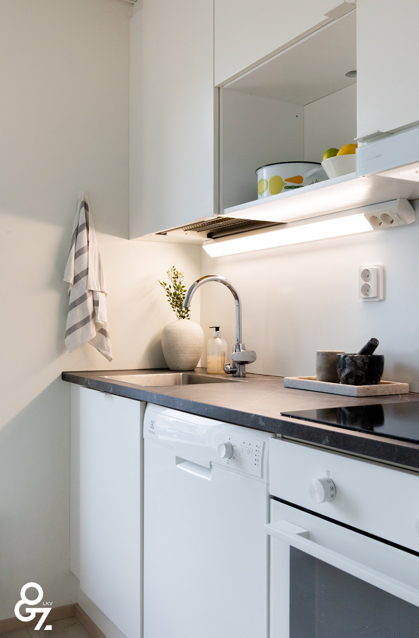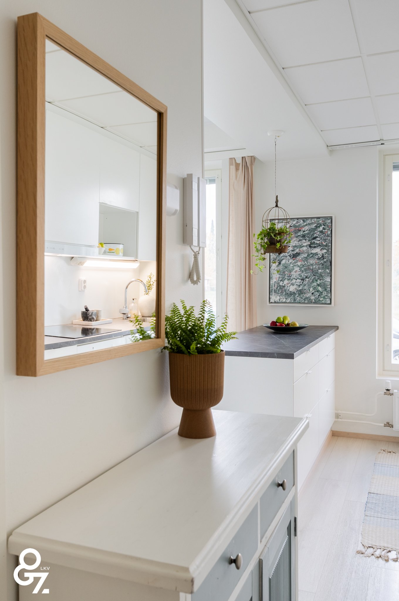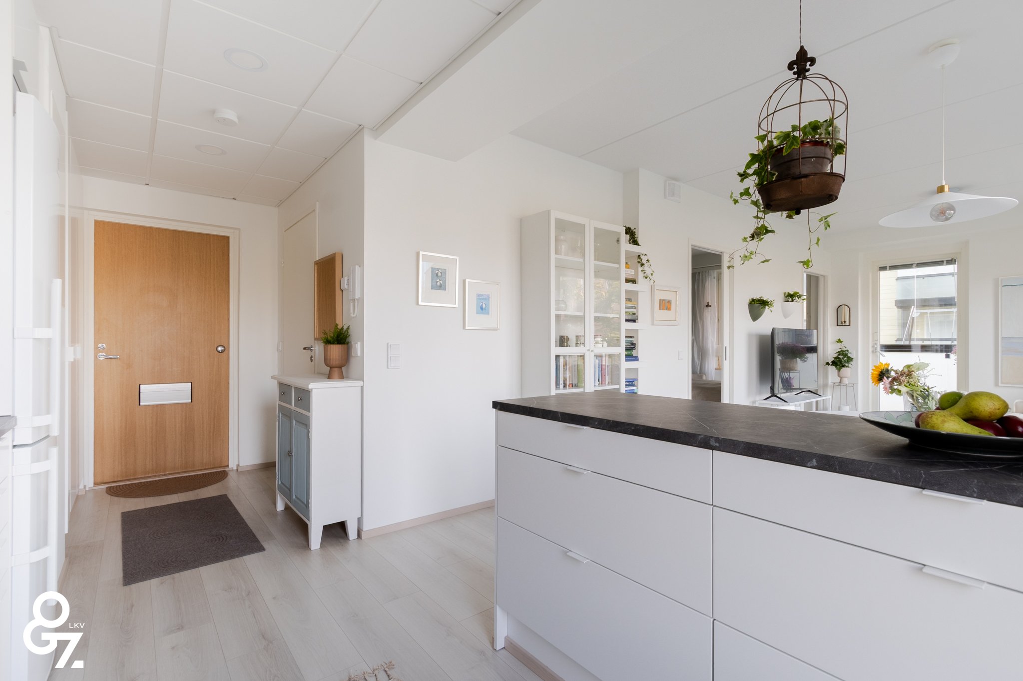Pohjaratkaisu on tehokas ja valoisa. Keittiössä on Novart-kaapistot, Electroluxin kodinkoneet ja saareke vetolaatikoilla. Olohuone ja keittiö muodostavat yhtenäisen tilan. Makuuhuoneessa on kiinteät vaatekaapit ja liukuovet. Kylpyhuoneessa sadesuihku, lattialämmitys sekä tilavaraus pyykinpesukoneelle ja kuivausrummulle. Lasitettu parveke jatkaa oleskelutilaa.