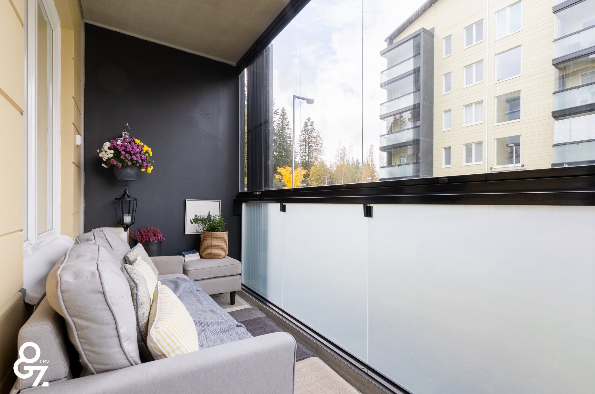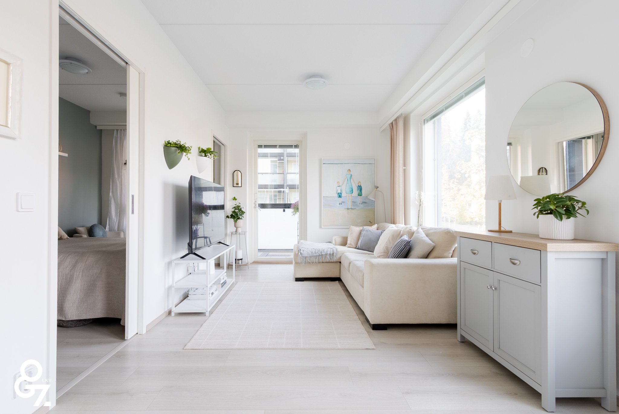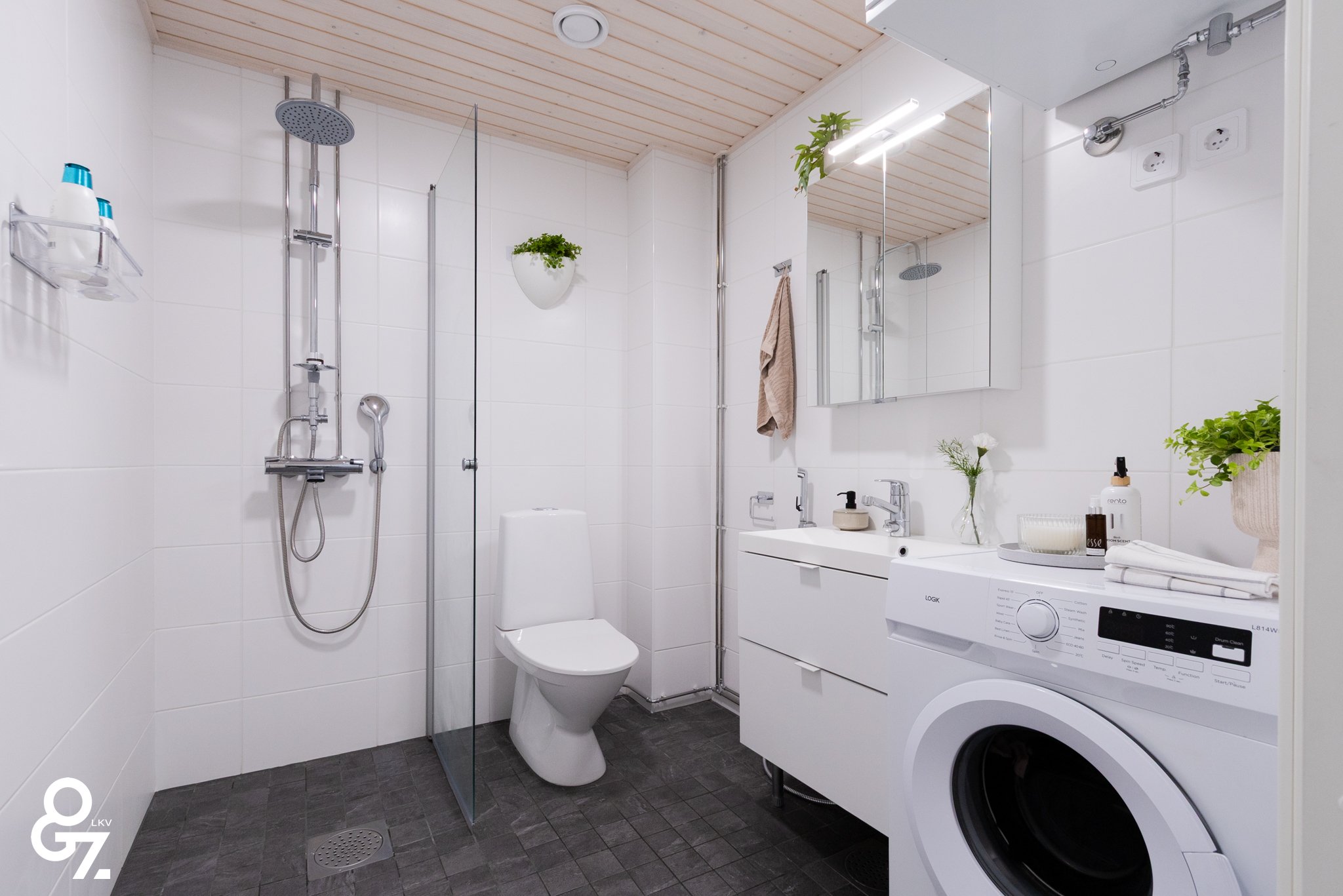 Pohjaratkaisu on tehokas ja valoisa. Keittiössä on Novart-kaapistot, Electroluxin kodinkoneet ja saareke vetolaatikoilla. Olohuone ja keittiö muodostavat yhtenäisen tilan. Makuuhuoneessa on kiinteät vaatekaapit ja liukuovet. Kylpyhuoneessa sadesuihku, lattialämmitys sekä tilavaraus pyykinpesukoneelle ja kuivausrummulle. Lasitettu parveke jatkaa oleskelutilaa.
