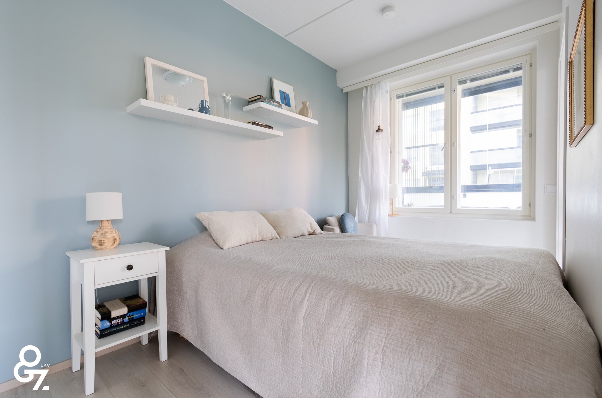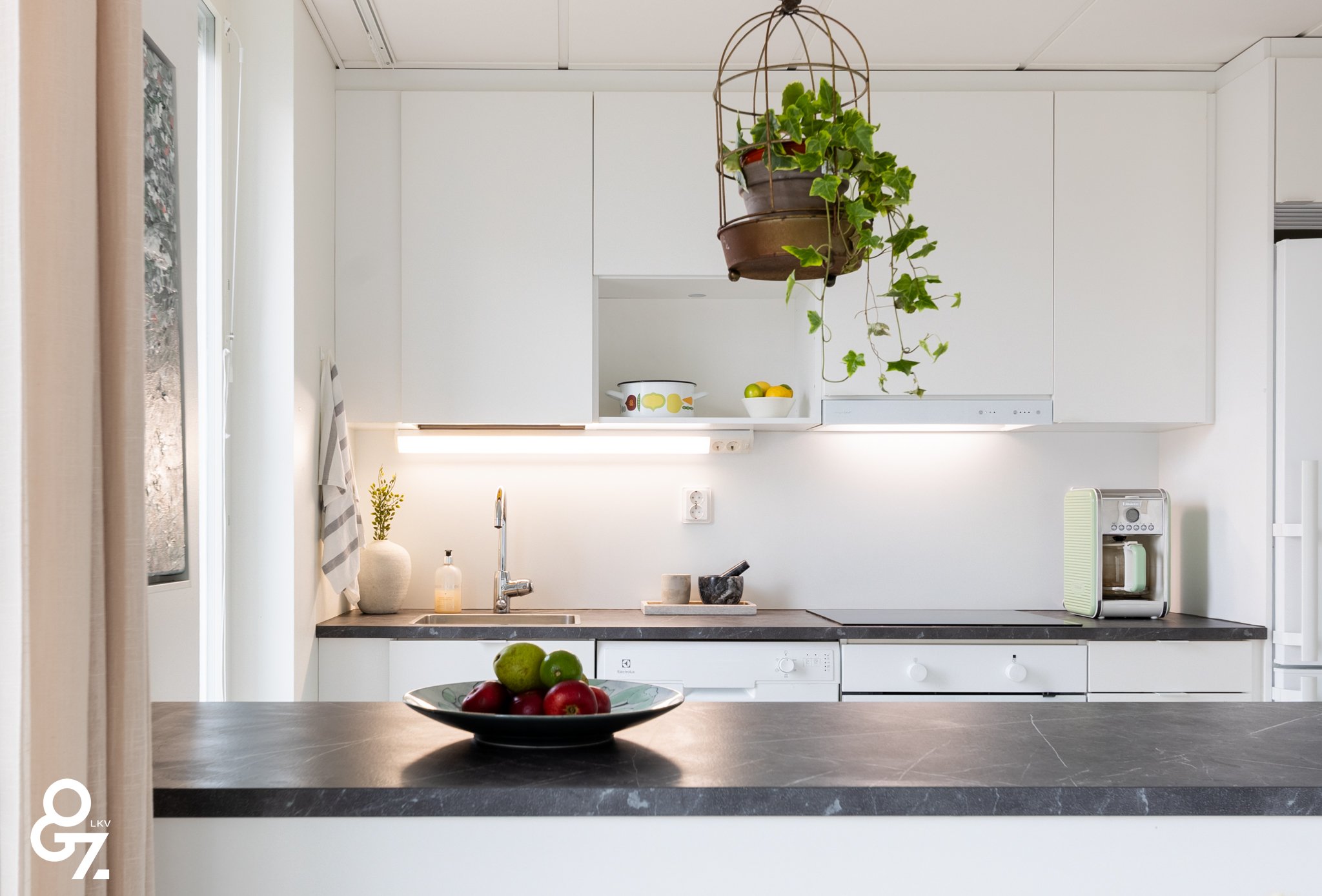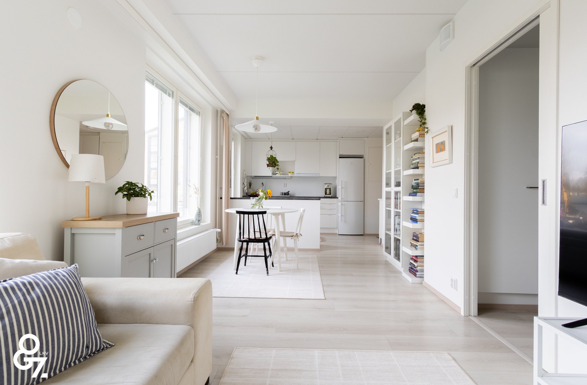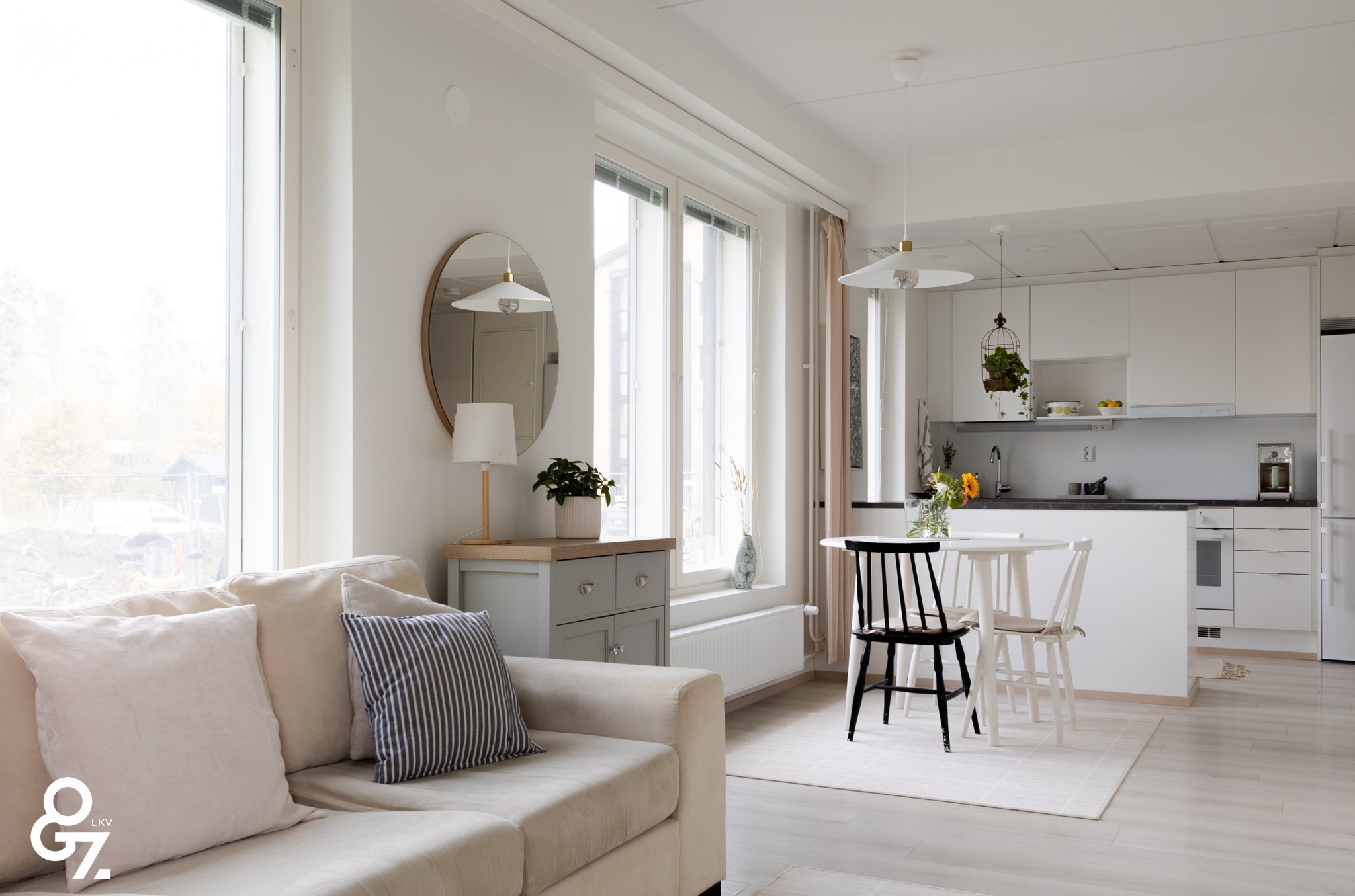 Pohjaratkaisu on tehokas ja valoisa. Keittiössä on Novart-kaapistot, Electroluxin kodinkoneet ja saareke vetolaatikoilla. Olohuone ja keittiö muodostavat yhtenäisen tilan. Makuuhuoneessa on kiinteät vaatekaapit ja liukuovet. Kylpyhuoneessa sadesuihku, lattialämmitys sekä tilavaraus pyykinpesukoneelle ja kuivausrummulle. Lasitettu parveke jatkaa oleskelutilaa.