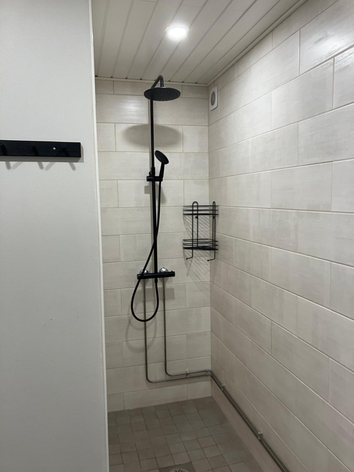 Kylpyhuoneessa wc ja suihku, pesukoneliitäntä, kaappi ja allastaso, lattialämmitys. Laattalattia ja maalatut seinät. Koneellinen ilmanpoisto.