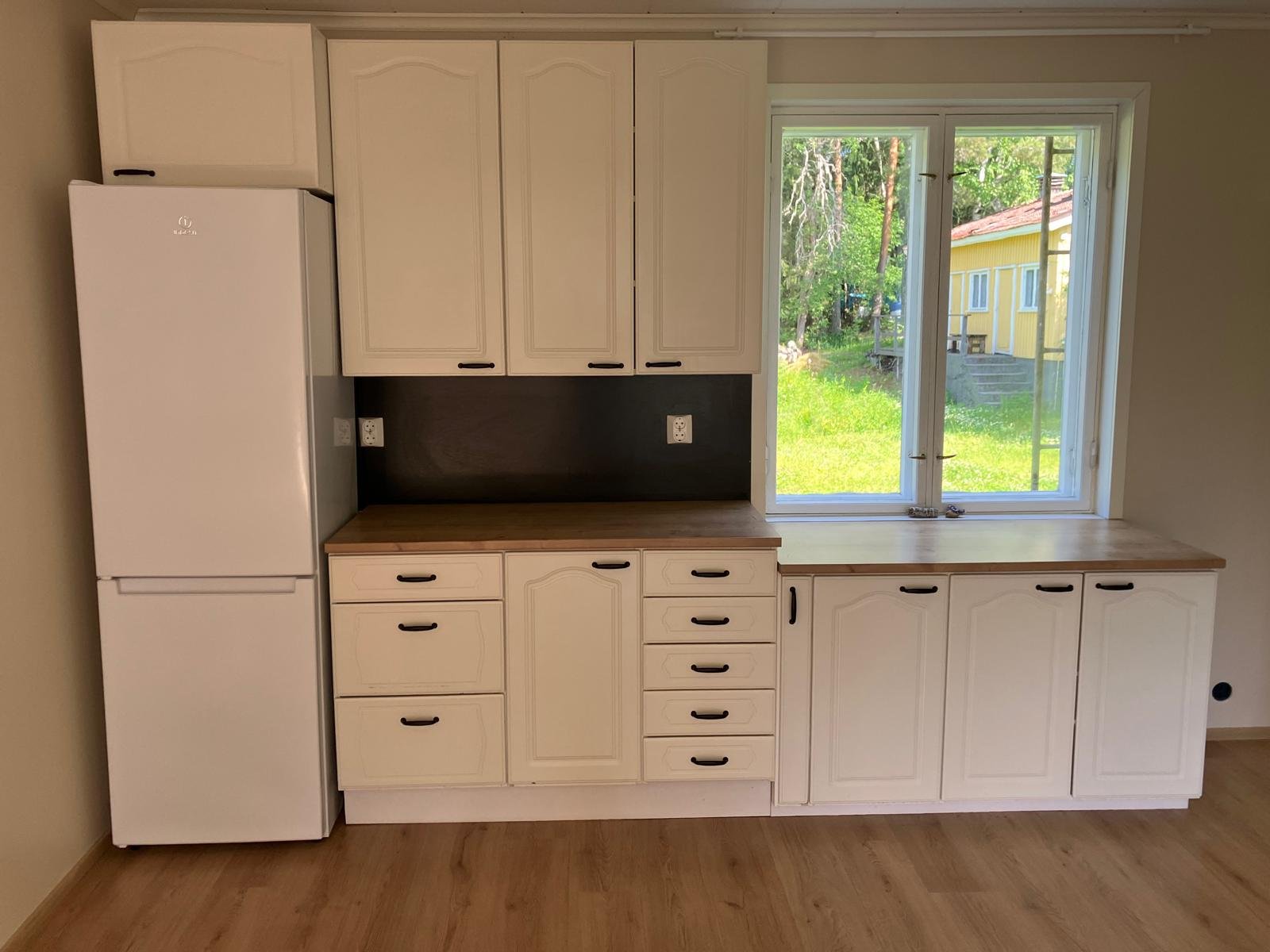 2022 kaikki sisäpinnat, huonejärjestys muutettu. Uusi keittiö ja olohuone yhtenäistä tilaa. Rakennettu keskikerrokseen kokonaan uusi wc/kph. 2022-2023 katto uusittu, tehty salaojat ja asennettu patolevyt, uusittu rännit ja sadevesijärjestelmät. Uusittu kaikki sähköt (ei pihasaunan sisältä). Uudet käyttövesiputket ja viemärit, myös tonttiviemäri ja vesijohto sekä vesimittari vaihdettu. Rakennuksen keskikerroksen lisäeristys 50 mm Ekovilla v. 2022. Lämminvesivaraaja v. 2022. Asuinrakennus peruskorjattu v. 2022-2024. Ei terassia. Yläkerran ilmalämpöpumppu 12/24. Kellari remontoitu ja siistitty 2022-2024. Kuntotarkastusraportin mainintoja korjattu: korvausilmaventtiilin asennus yläkerran makuuhuoneeseen, keittiön allaskaapin alaosan läpiviennin tiivistys, tiskikoneen vuotosuojan oikein asennus ja tiskikoneen asianmukainen kiinnitys, yläkerran wc-varauksen vesiputken sulkeminen.