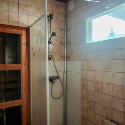 Varusteet: suihkuseinä, pesukoneliitäntä, suihku