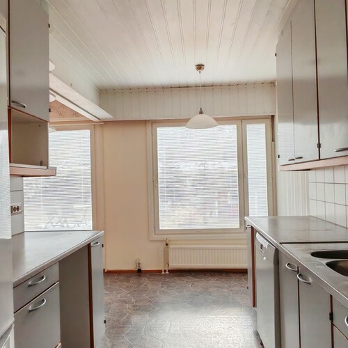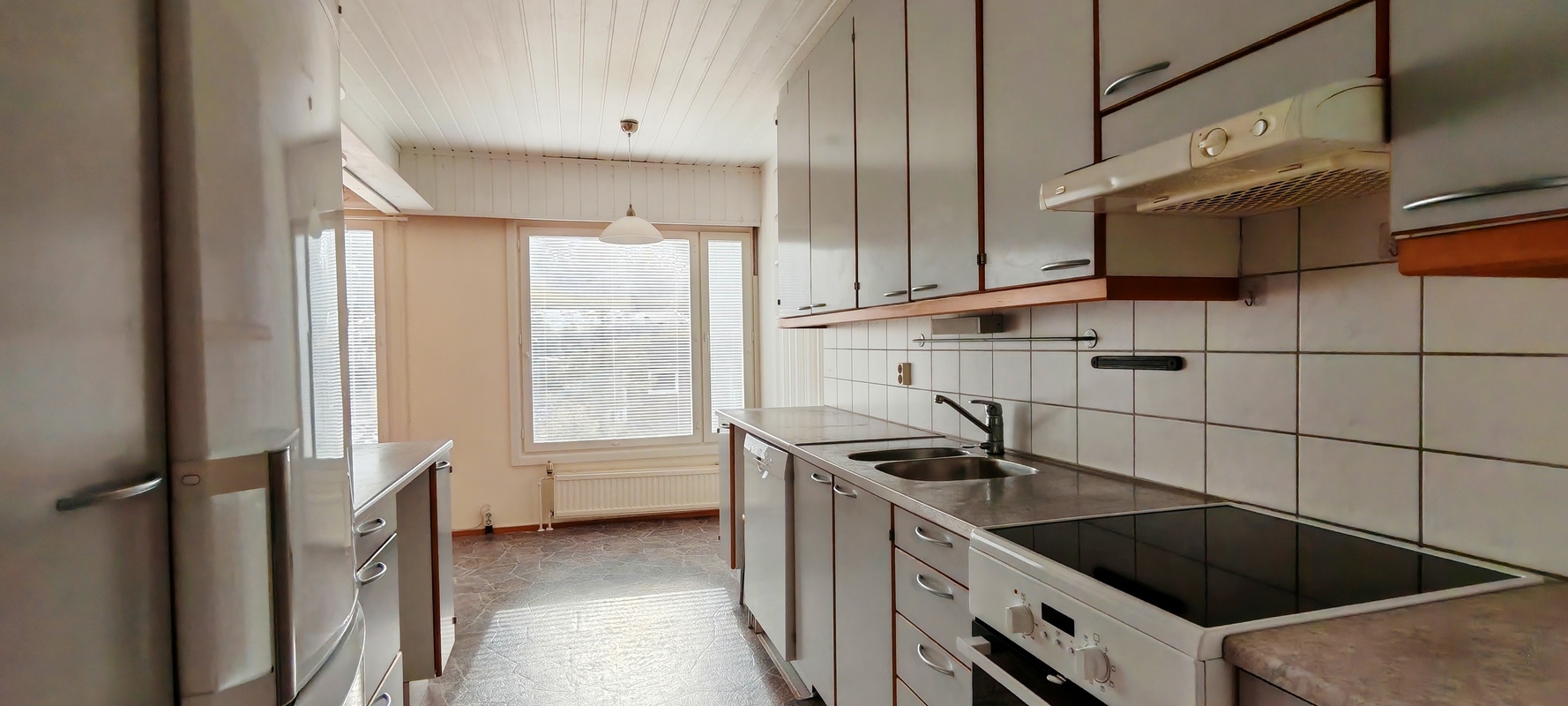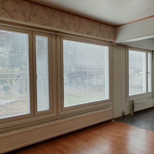 Huoneet: Olohuone, keittiö, kaksi huonetta, vaatehuone, kylpyhuone, sauna ja wc.