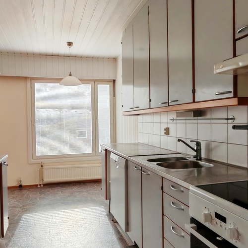 Varusteet: kaapistot, naulakko, ilmalämpöpumppu, matontamppausteline, pyykinkuivausteline, jätesäiliö
