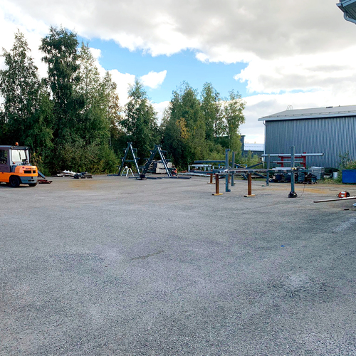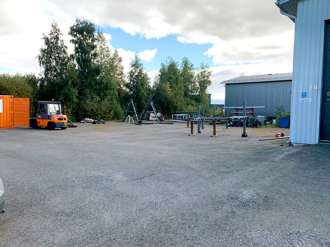 Koko rakennuksen piha-alue on suuri, asfaltoitu ja sen pohjat kestävät myös raskaat ajoneuvot. Lisäksi piha-alueella on myös vastaavat öljynerotuskaivot kuin halleissa.