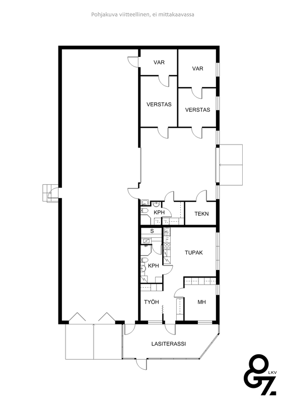 Nyt mahdollisuus vuokrata tämä 304 m² monitoiminen toimitila. Tämä kokonaisuus on yhdessä kerroksessa ja käsittää hallitilat, varastotilat ja toimistot, jossa on suurihallitila, 155 m² nosto-ovella 4,50 m ja sen sisäkorkeus on 5 m, myös pienempi hallitila, lisätiloineen 97,50 m², on nosto-ovella, paljon varastotilaa, toimistotilat ja 52,50 m² asunto, johon kuuluu tupakeittiö, makuuhuone, pesuhuone/wc ja sauna. Hallitiloissa on öljyn- ja hiekanerotuskaivot hälytysjärjestelmineen.